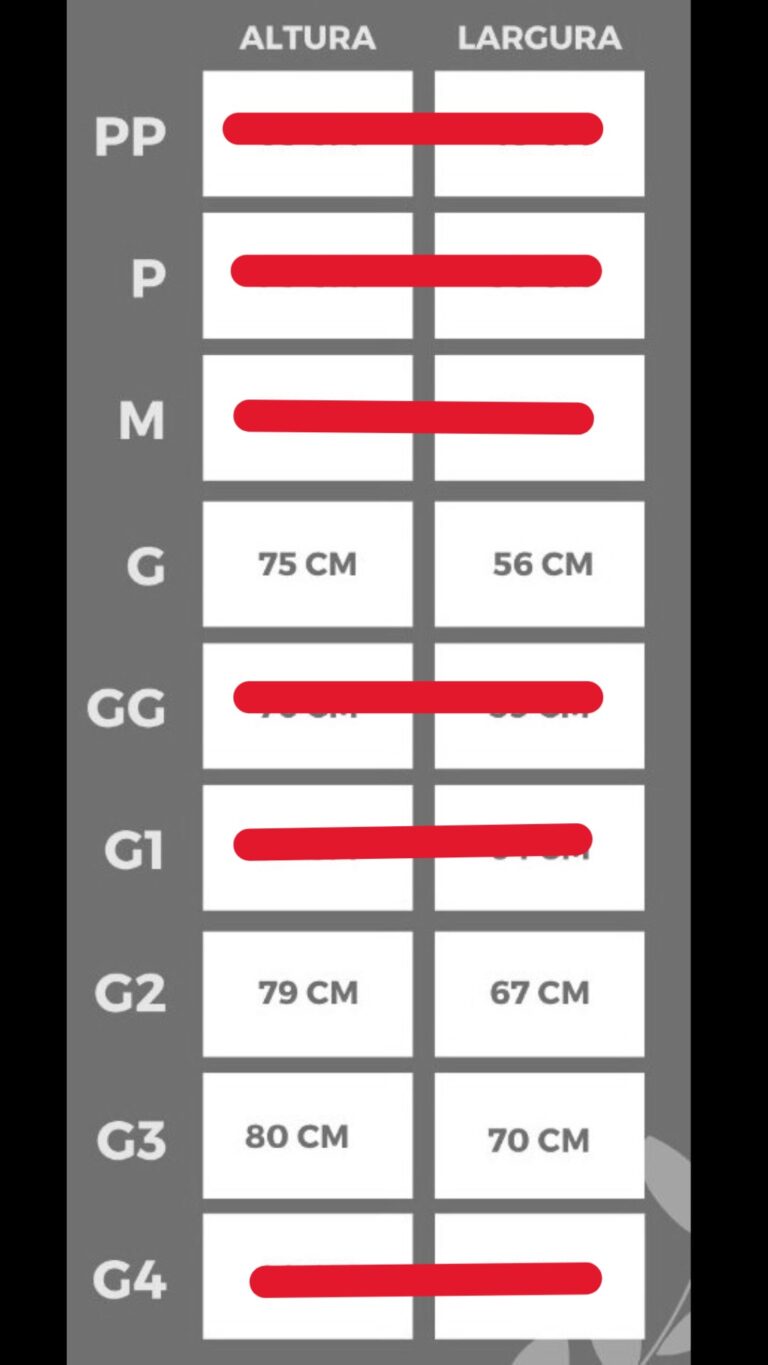 Tamanhos disponíveis: M, G, GG, G1, G2, G3 e G4